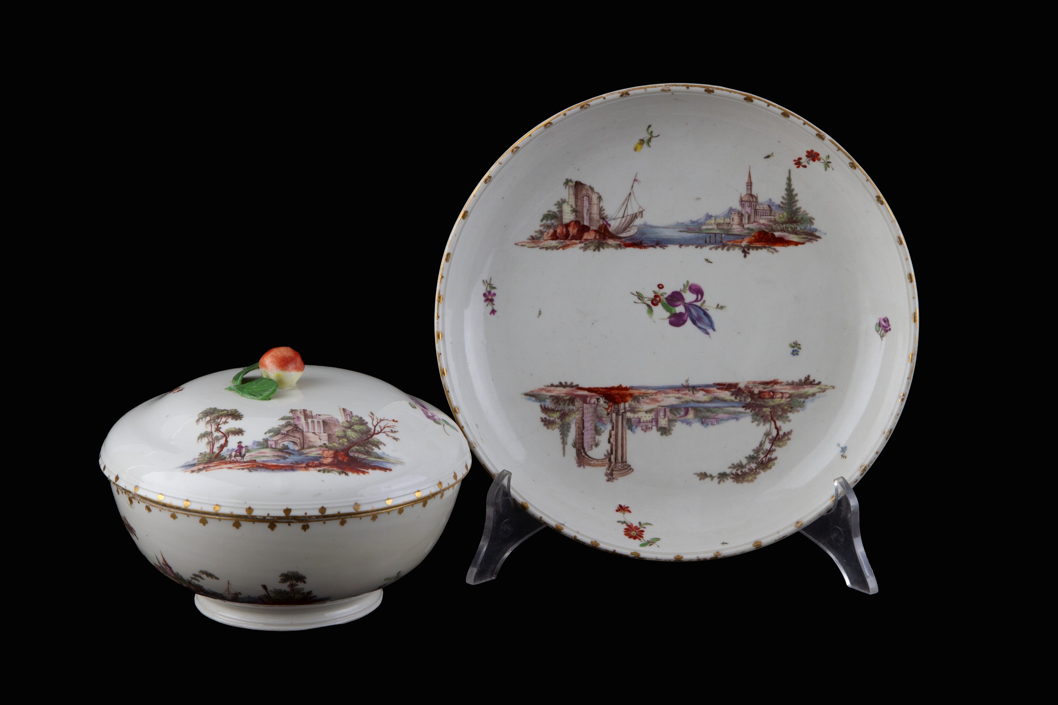 Porcelain maternity cup decorated with landscapes and architecture. LUDWIGSBURG manufacture. Marked on the bottom. 18th century.