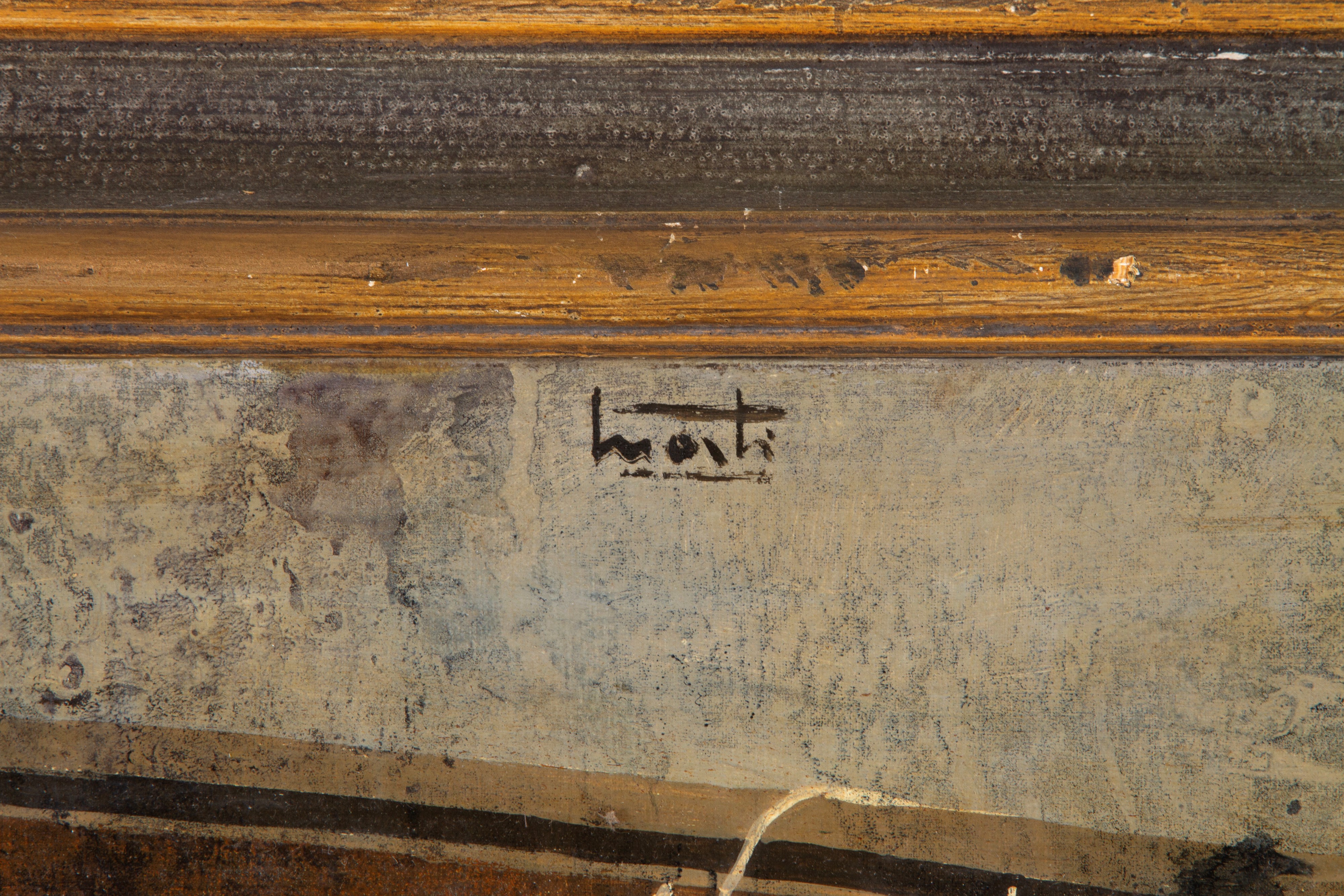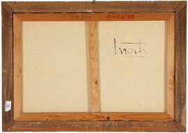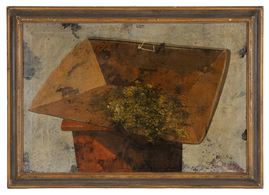 Oil painting on canvas depicting "SUITCASE AND STILL LIFE". Signed upper center. Countersigned on the back. Framed.