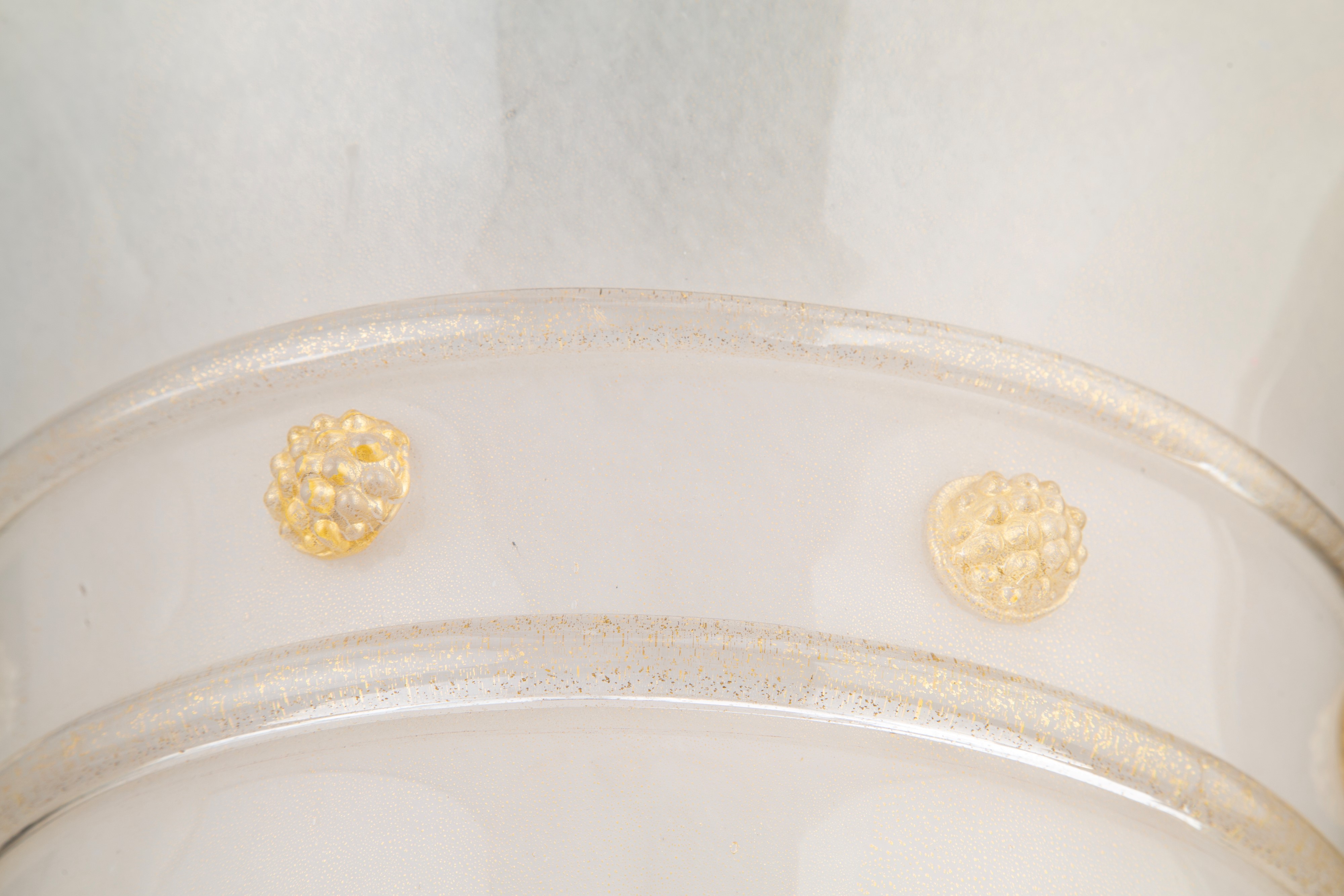 Pair of gold-accented glass wall lamps with floral decorations. Produced by BAROVIER & TOSO (attr.). 1970s-1980s.