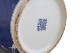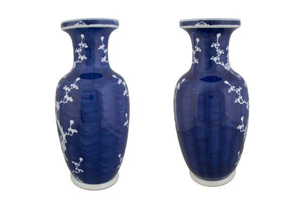 A pair of blue and white porcelain vases. Marked on the bottom. China.
