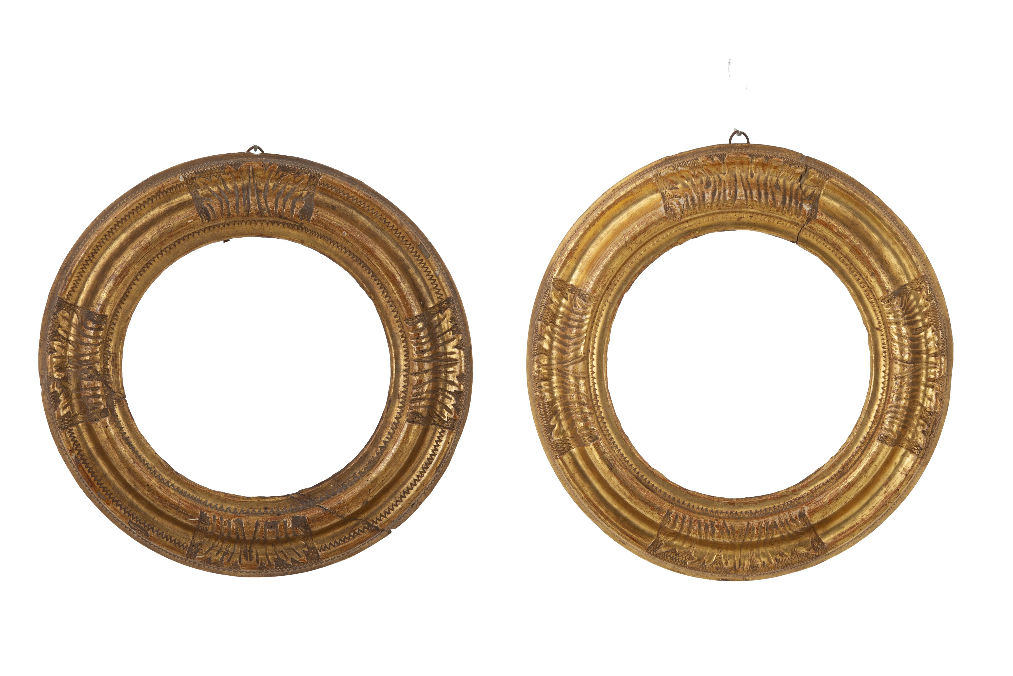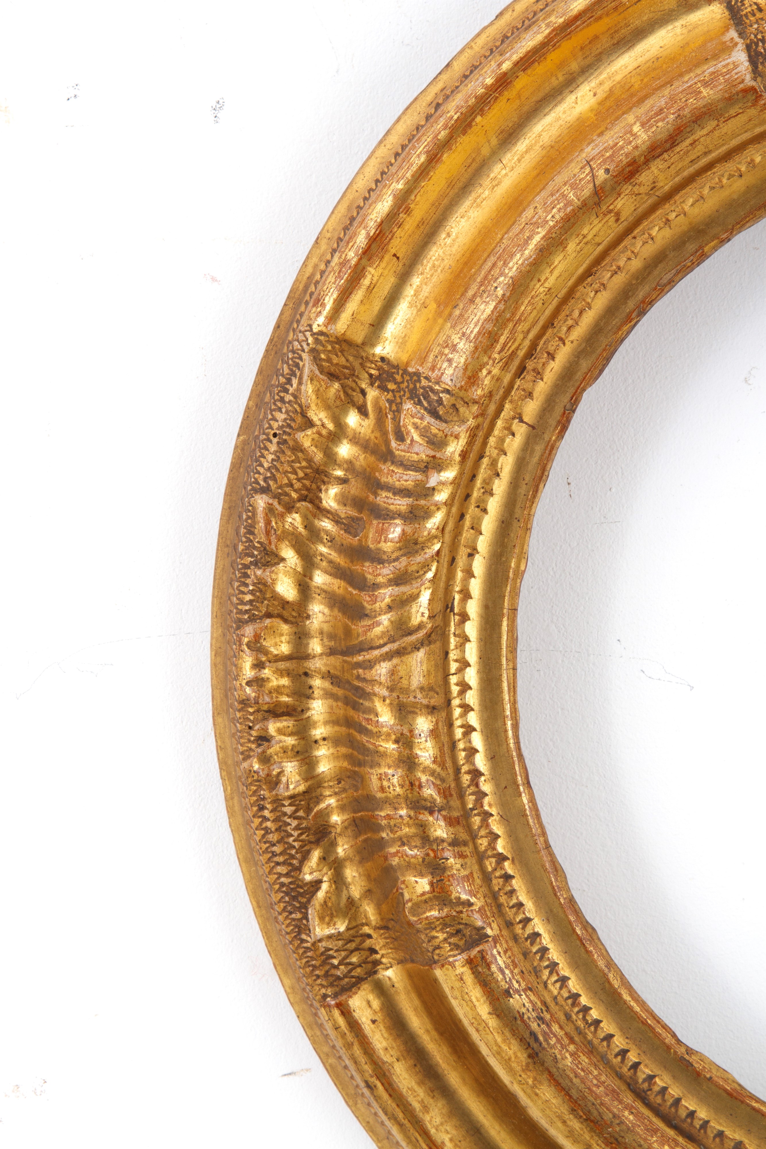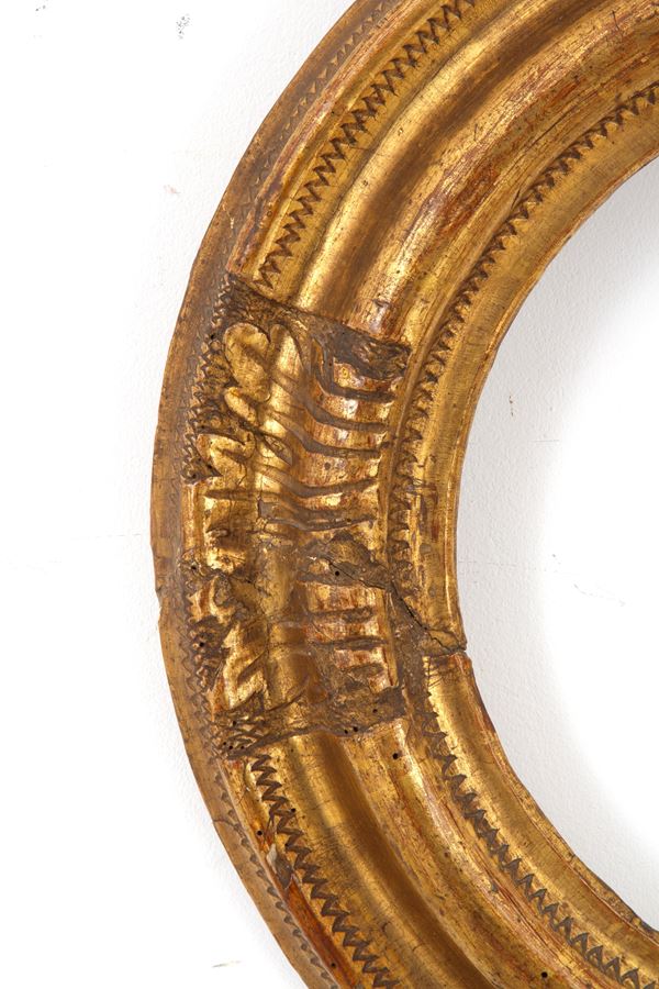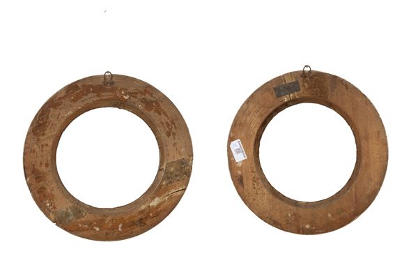 Pair of carved and gilded wooden frames. 19th century. Defects.