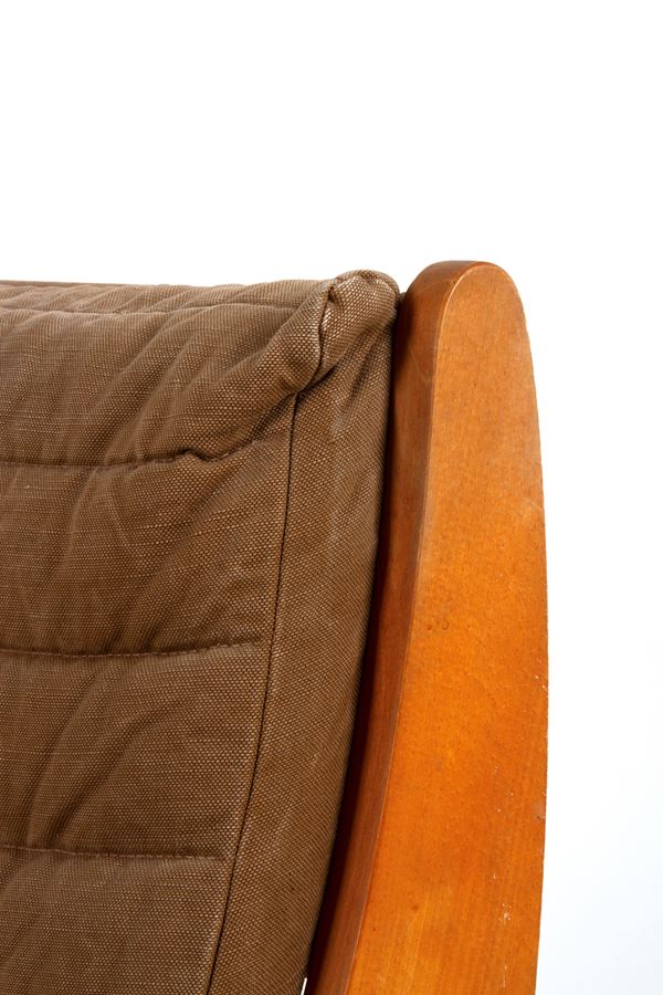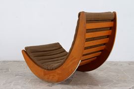 Relaxer 2 wooden rocking chair with Missoni fabric upholstery. Made by ROSENTHAL STUDIO LINE. 1970s.