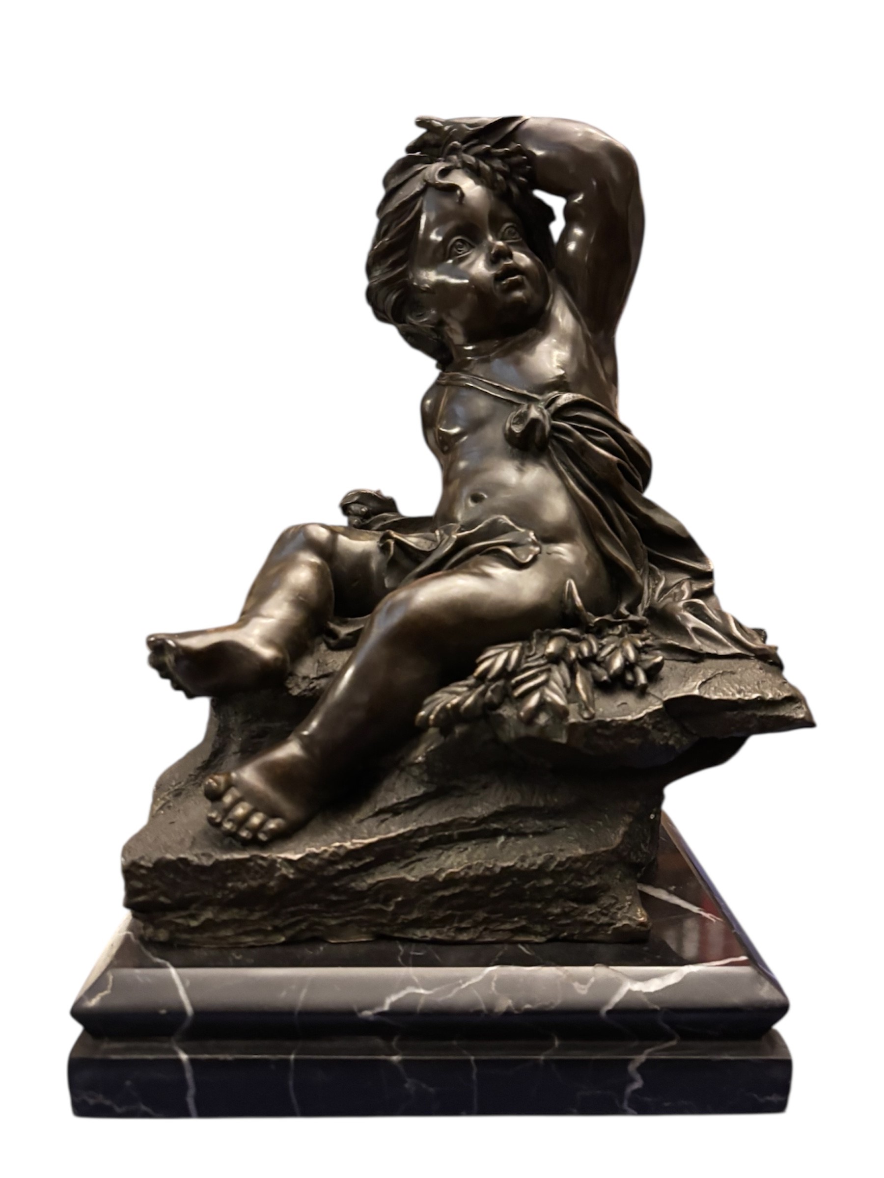Bronze sculpture depicting "PUTTO" on a marble base.