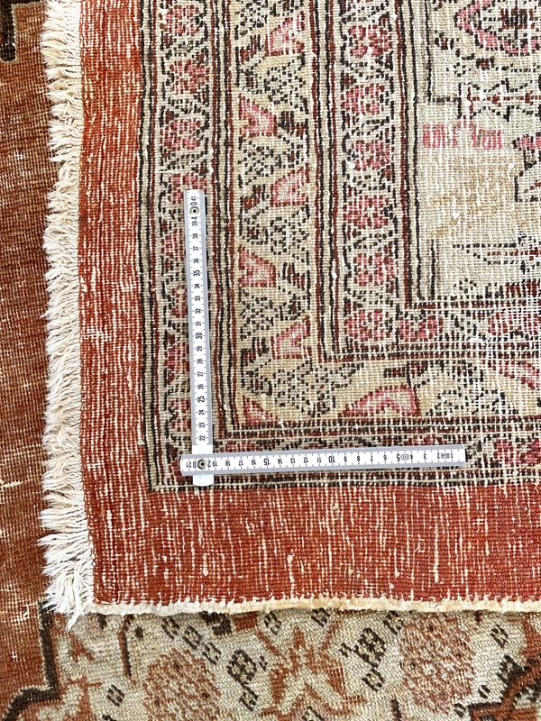 Tabriz Haji Jalili carpet. Persia. Late 19th century. Signs of wear, four original perimeter edges, no field restoration.
