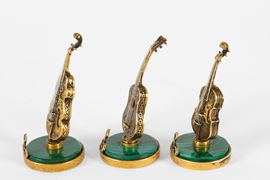 Three models of musical instruments in malachite and silver