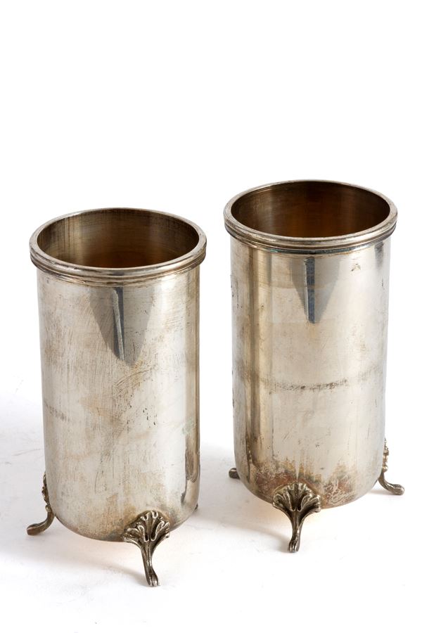 Two 800 silver breadstick holders, approx. 350 grams total. Silversmith UGO REPOSSI, Valenza. Hallmarks on the bottom. 20th century.