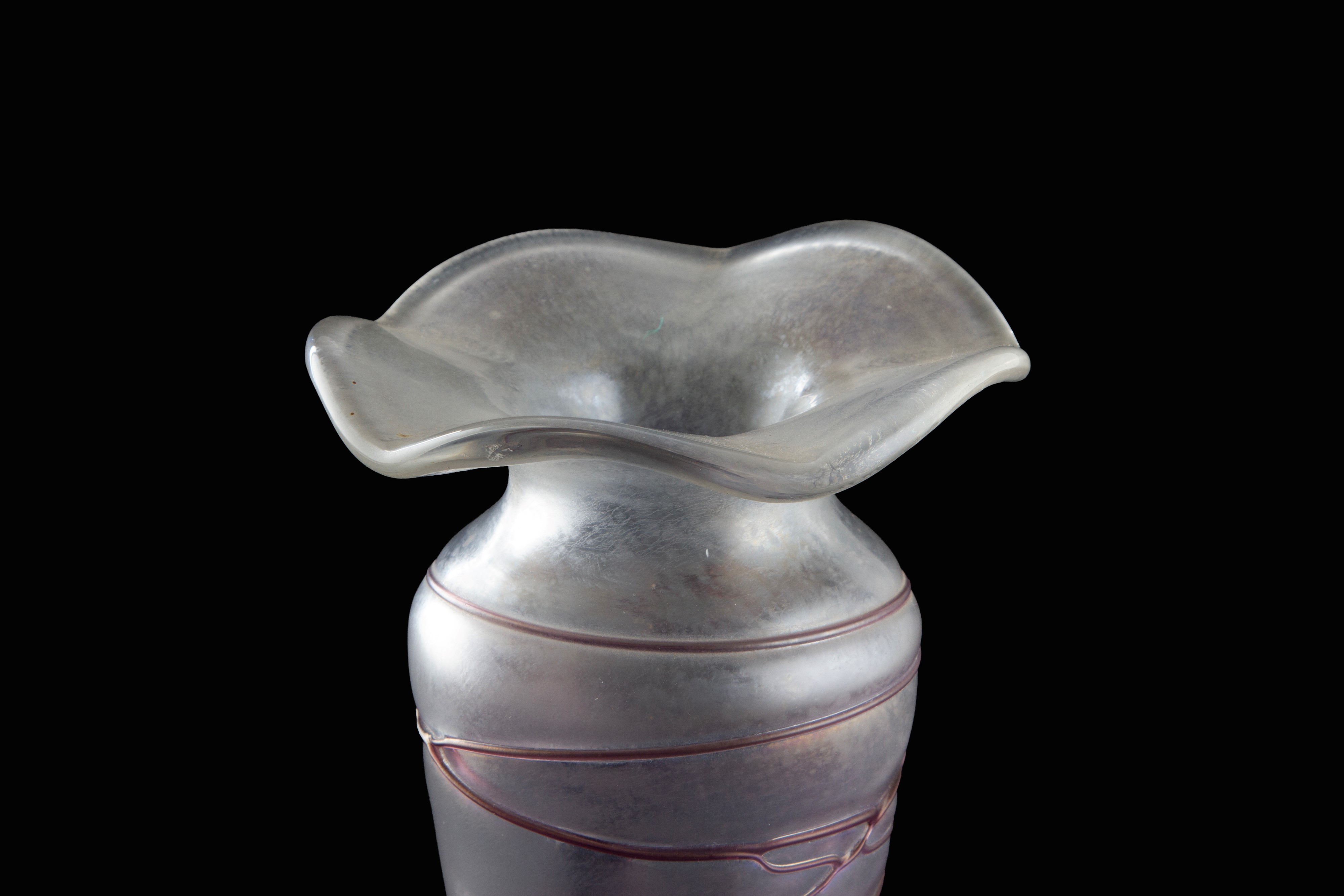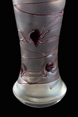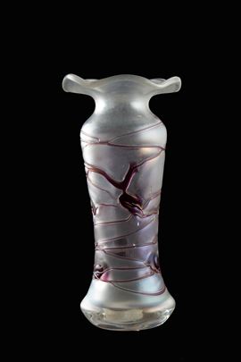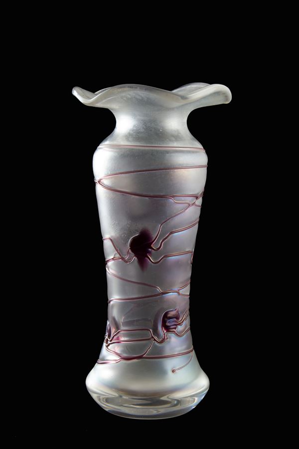 Glass vase with glass paste decorations in shades of pink and wine. VON POSCHINGER manufacture.