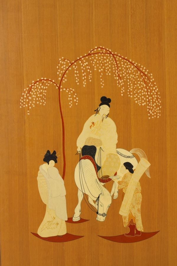 Wooden cabinet with oriental life scene