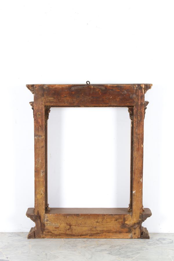 Sansovino-style frame in carved and gilded wood. Early 20th century. Minor defects.