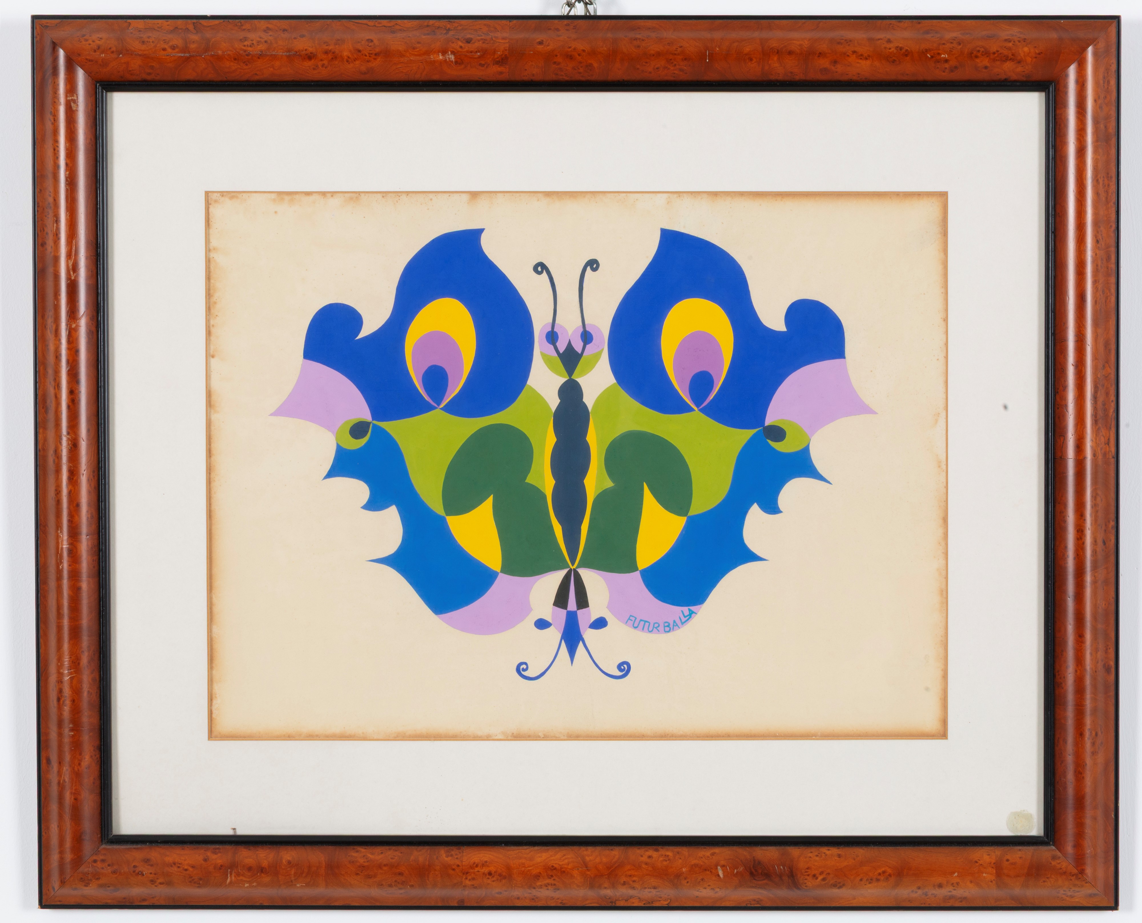 Color silkscreen on paper depicting "BUTTERFLY". Signed in the center. Framed. Defects along the edge.
