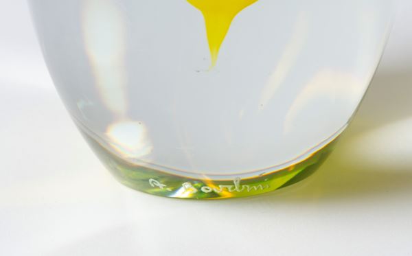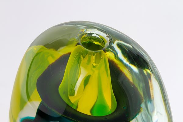 Solstizio vase in submerged and incalmato glass. Signed at the bottom and labeled on the side. 1990.