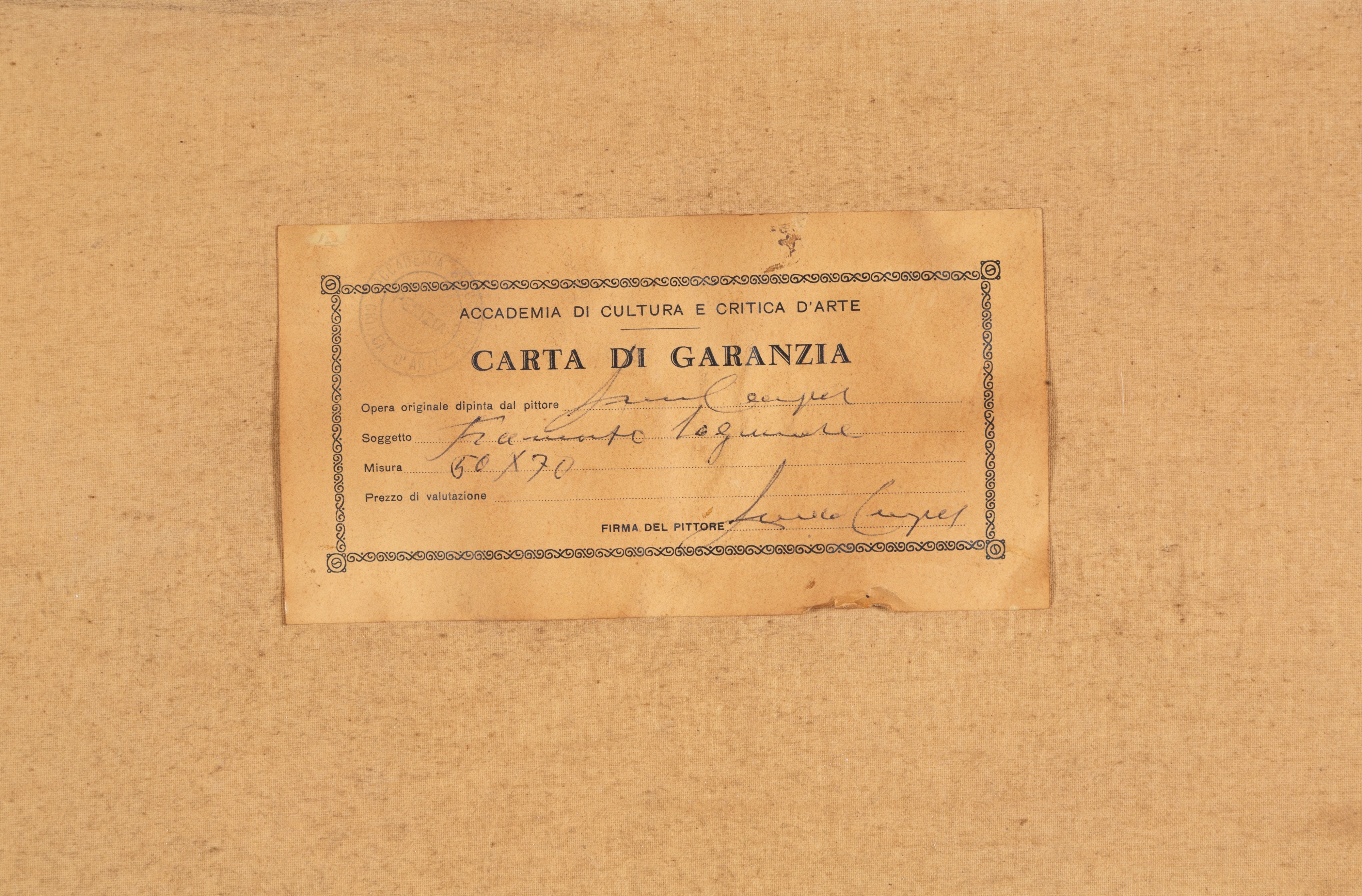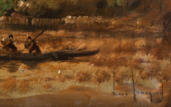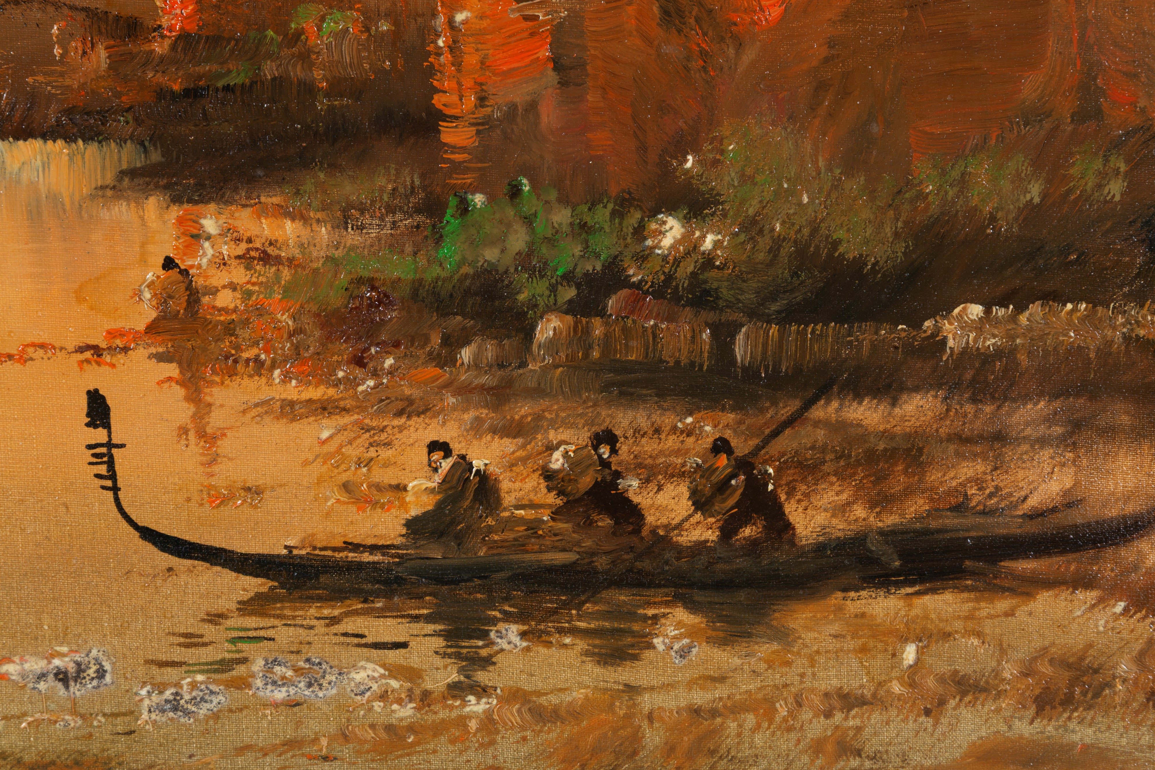 Oil on canvas titled "LAGOON SUNSET". Signed lower right. With a guarantee card from the Academy of Culture and Art Criticism, signed by the artist on the back. Housed in a gilded frame.