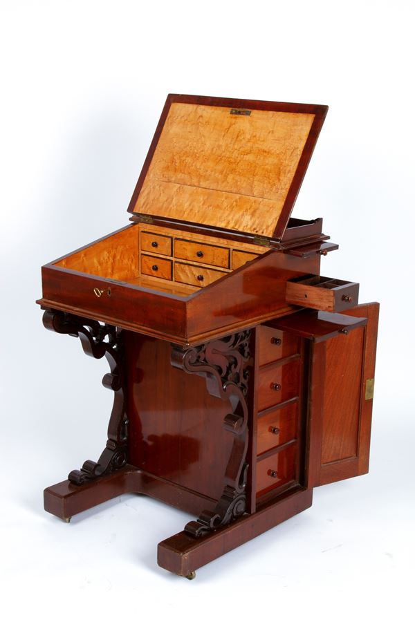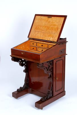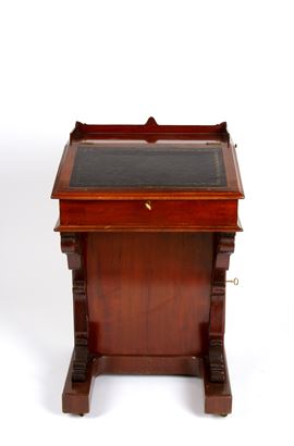 Mahogany Davenport with green leather top. England. 19th century. Minor defects.