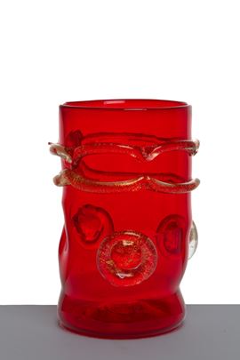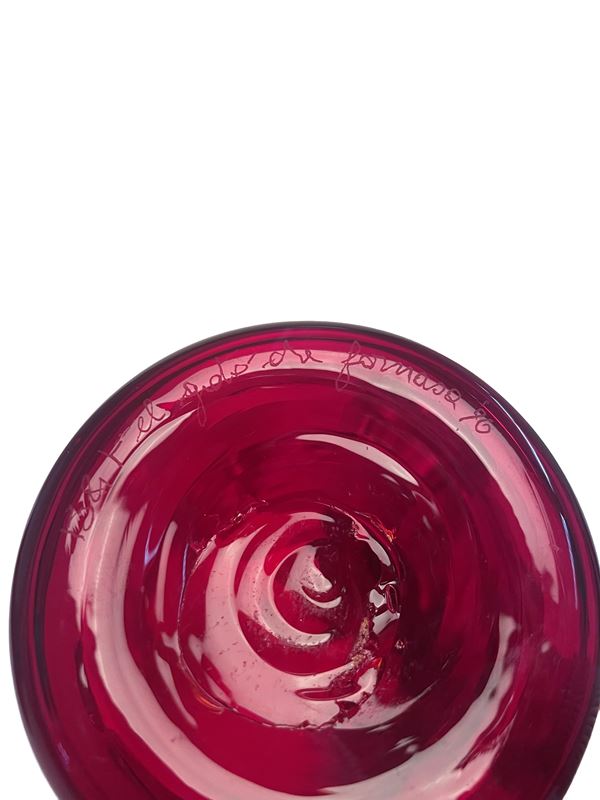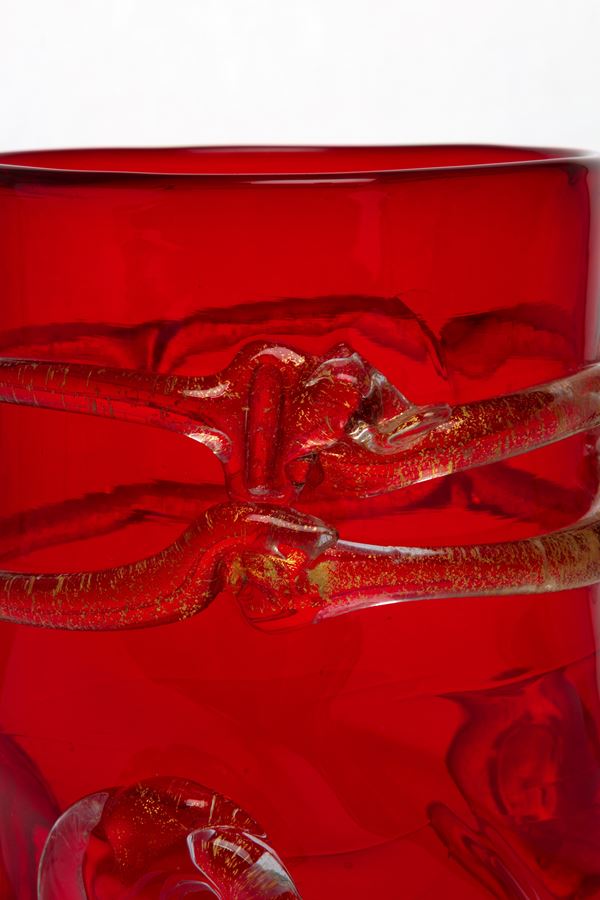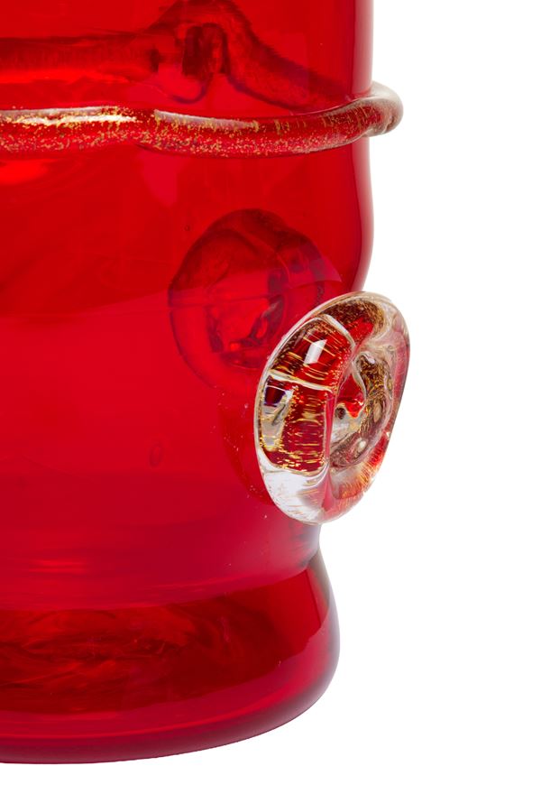Red glass Goto de Fornasa with gold highlights. BAROVIER & TOSO. Signed and dated 96 on the bottom.