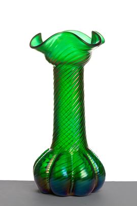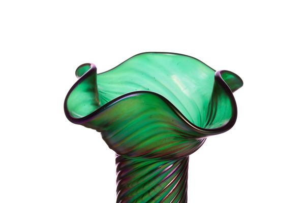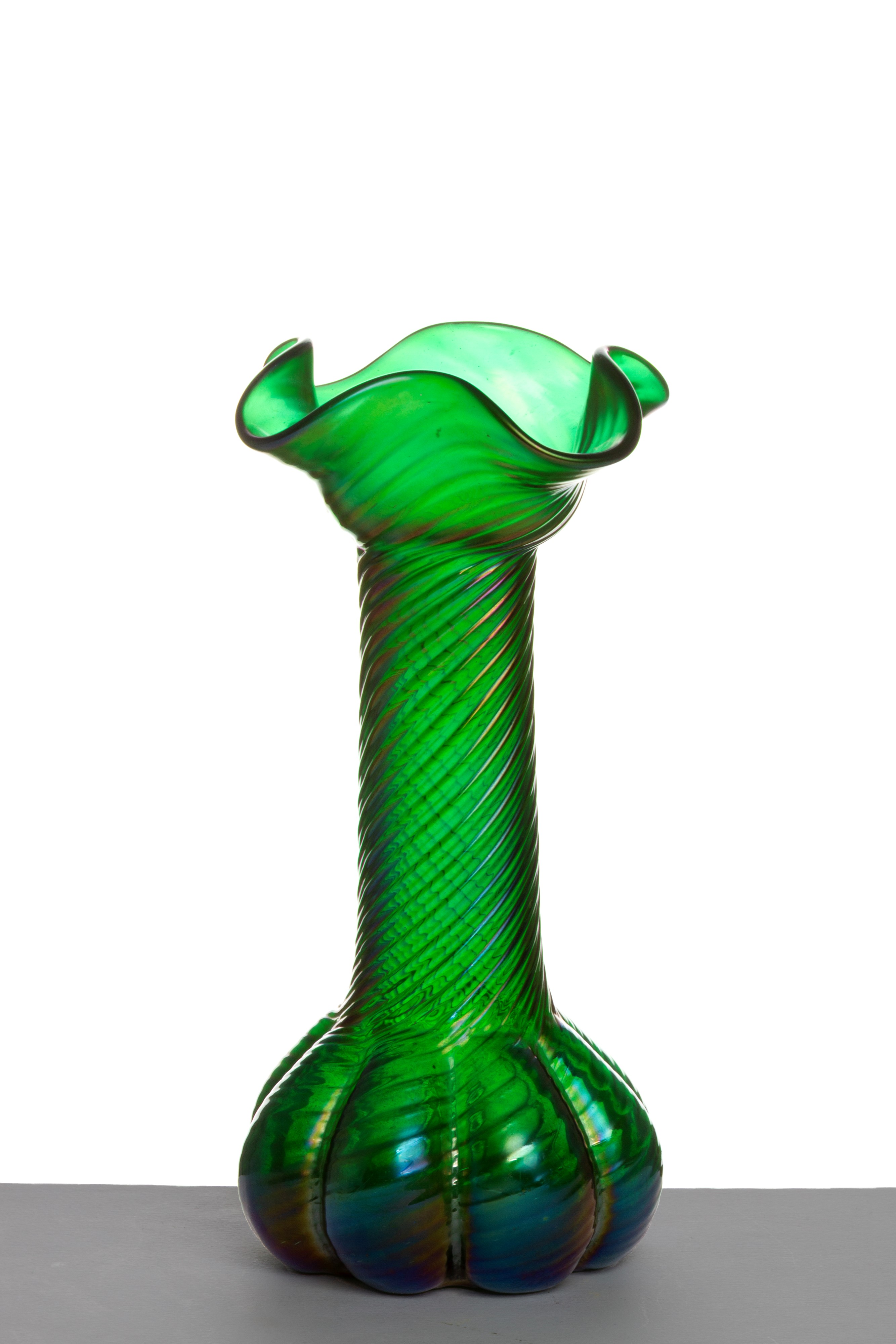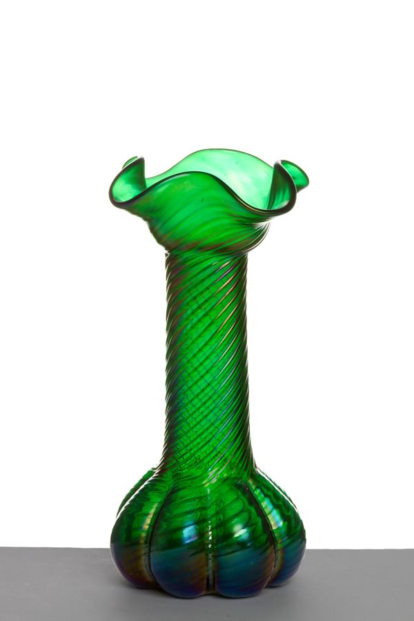 Green iridescent glass vase. LOETZ. Early 20th century.