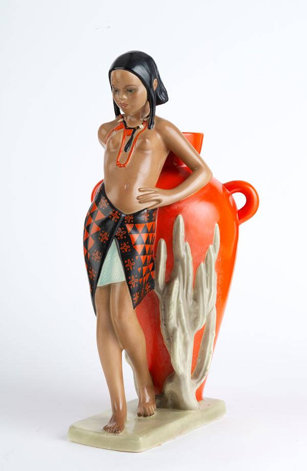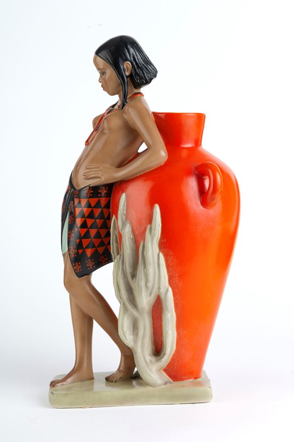 Ceramic sculpture "ABYSSINIAN GIRL LEANING ON AN AMPHORA" for LENCI