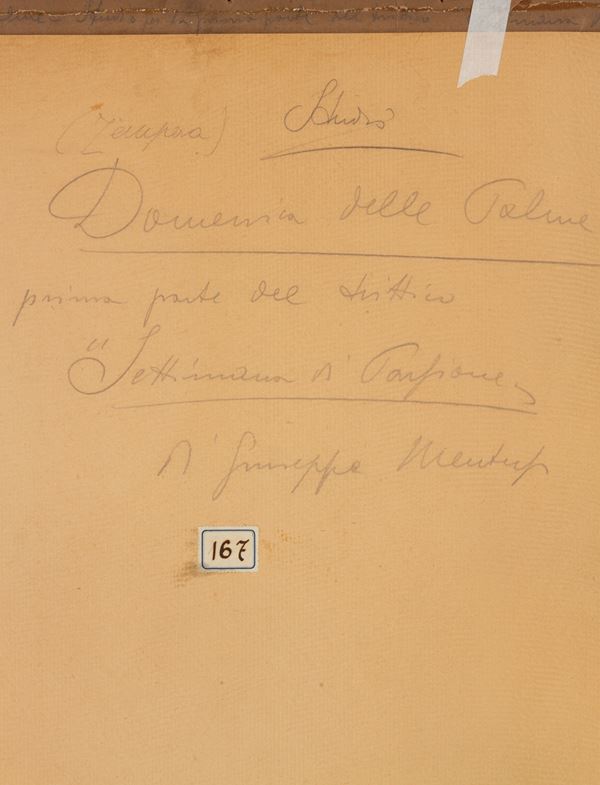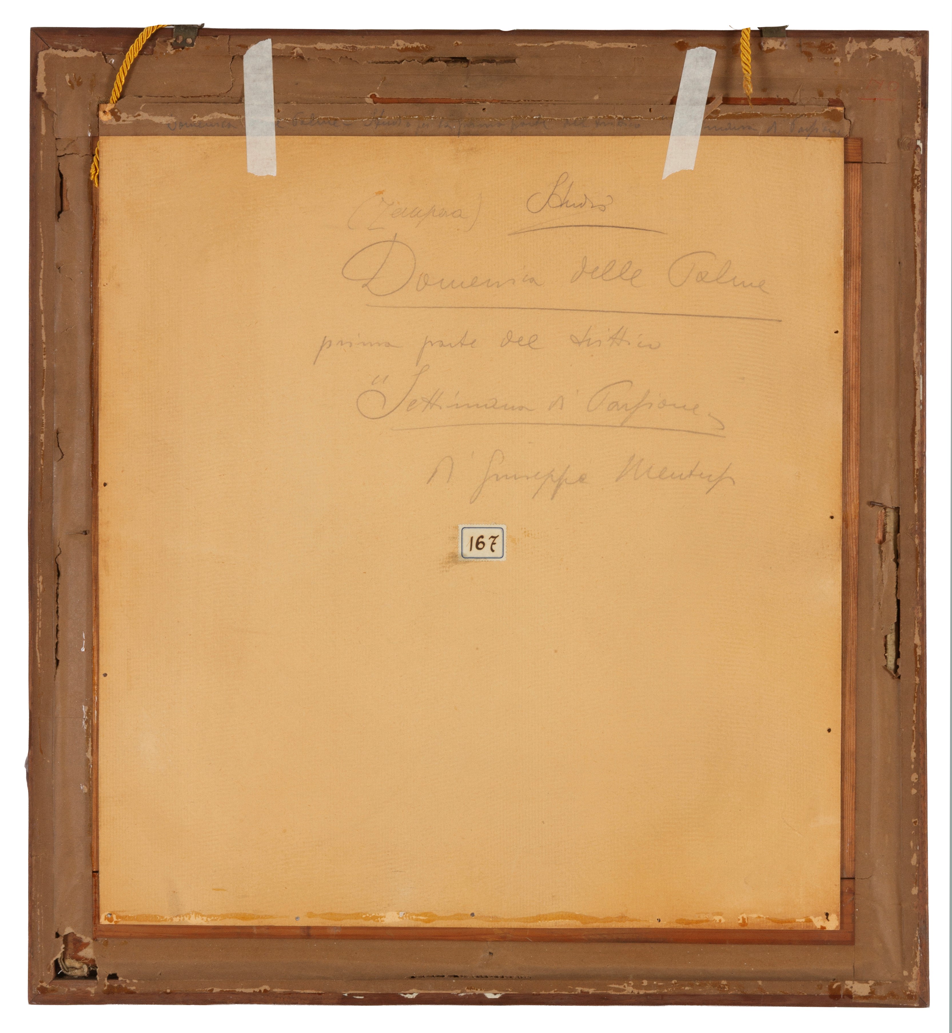 Tempera on canvas depicting "PALM SUNDAY". Signed and dedicated lower left. Framed.
