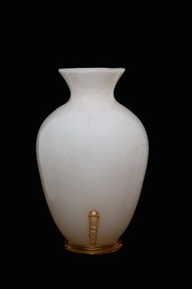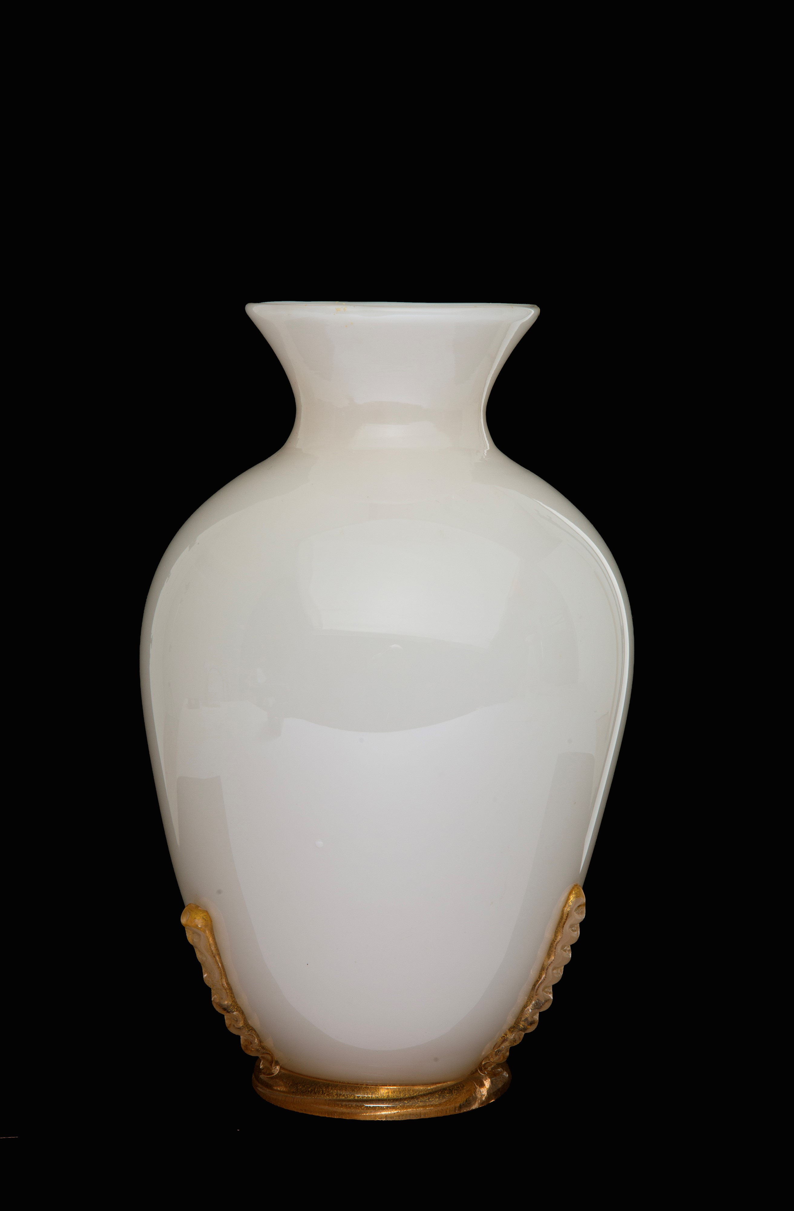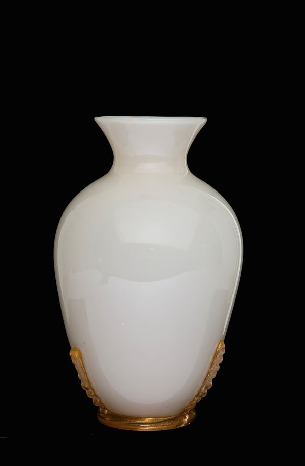 Milk glass vase. It's based on a model designed by Zecchin and Martinuzzi in the 1930s at their Zecchin Martinuzzi Artistic Glass and Mosaics glassworks. 1960s.