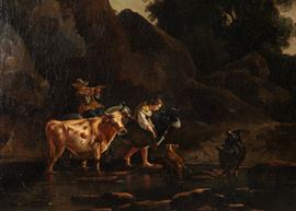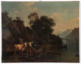 Painting "RIVER LANDSCAPE WITH SHEPHERDS"