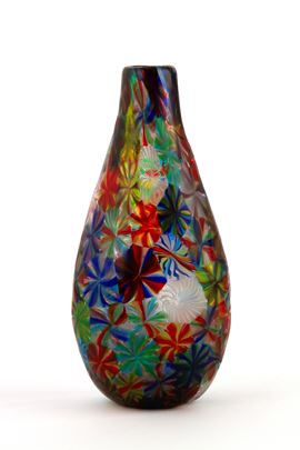 Stellato series glass vase made using "starry" murrine whose internal motif always resembles stylized stars. Produced by FRATELLI TOSO. 1954-1956.