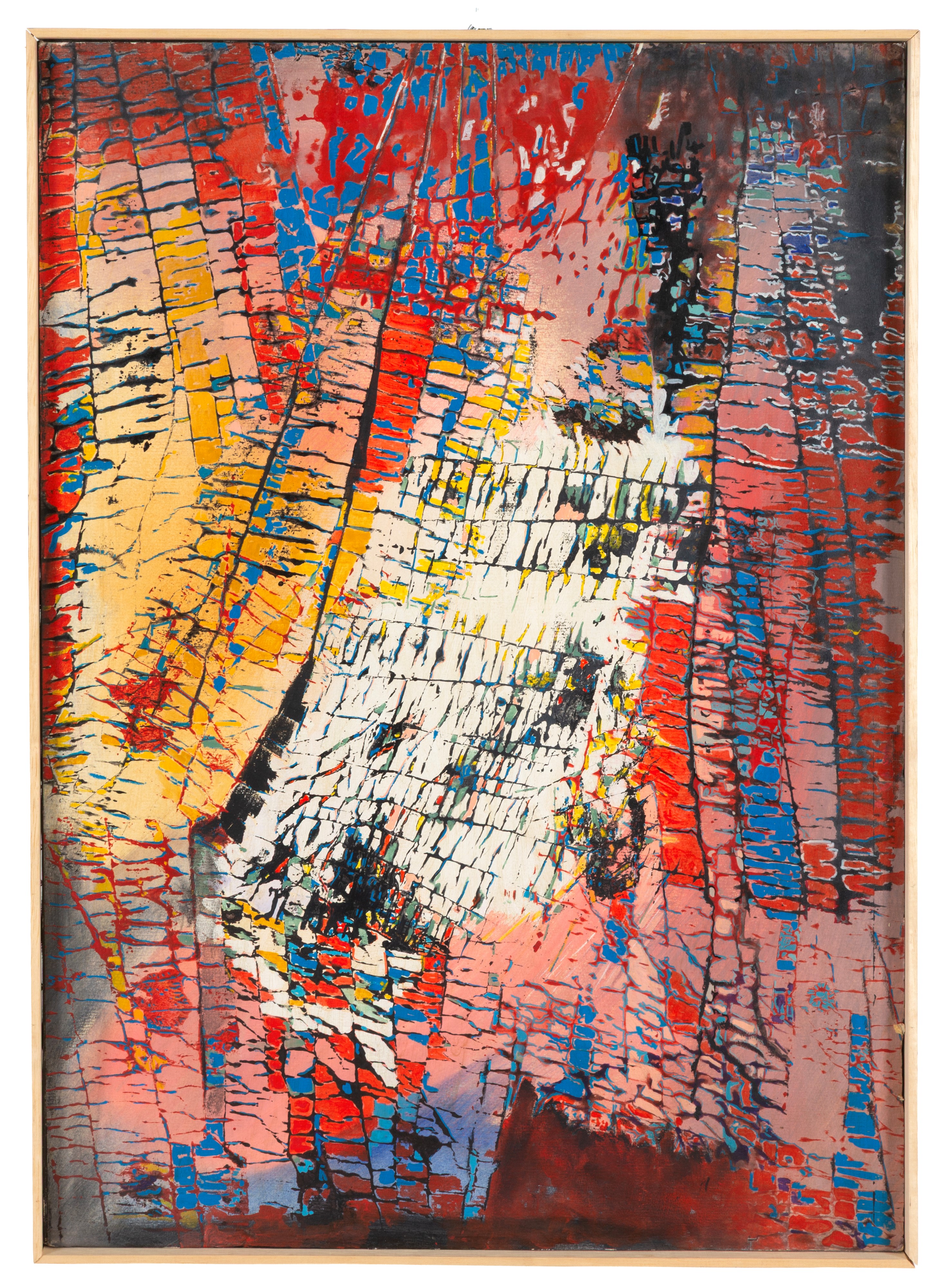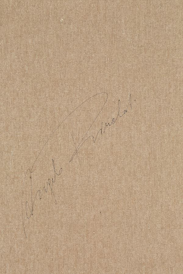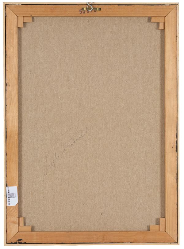 Mixed media on canvas depicting "A VOLO D'UCCELLO". Signed on the back.