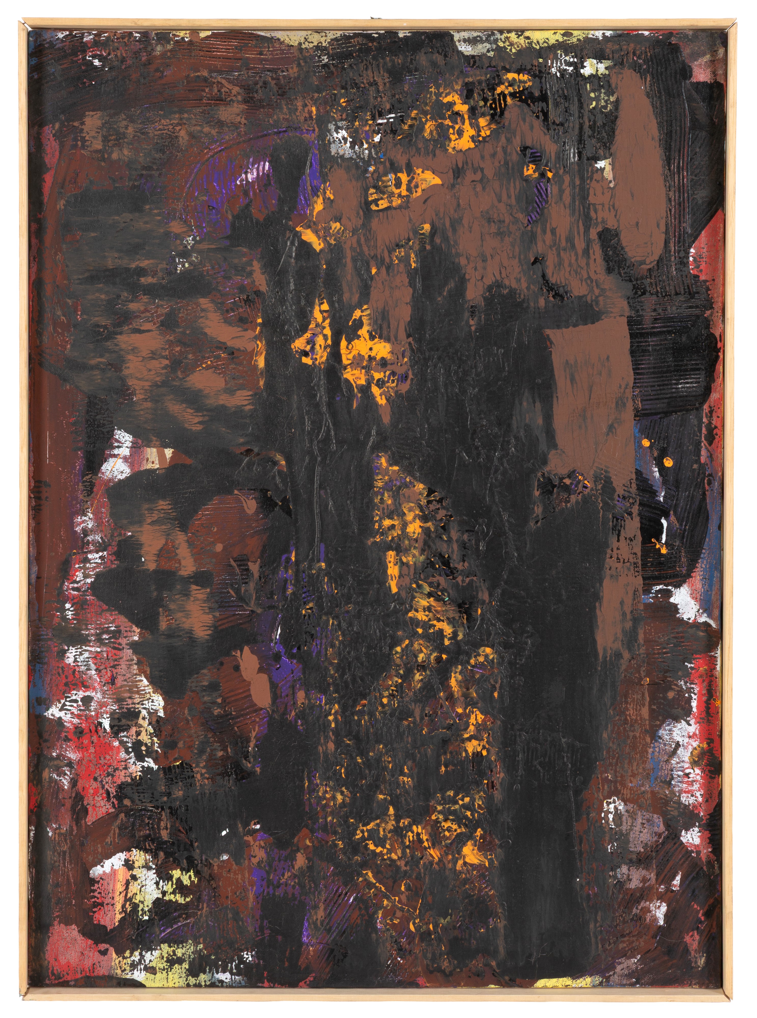 Mixed media on canvas depicting "IMPRESSIONS IN BLACK". Signed on the back.