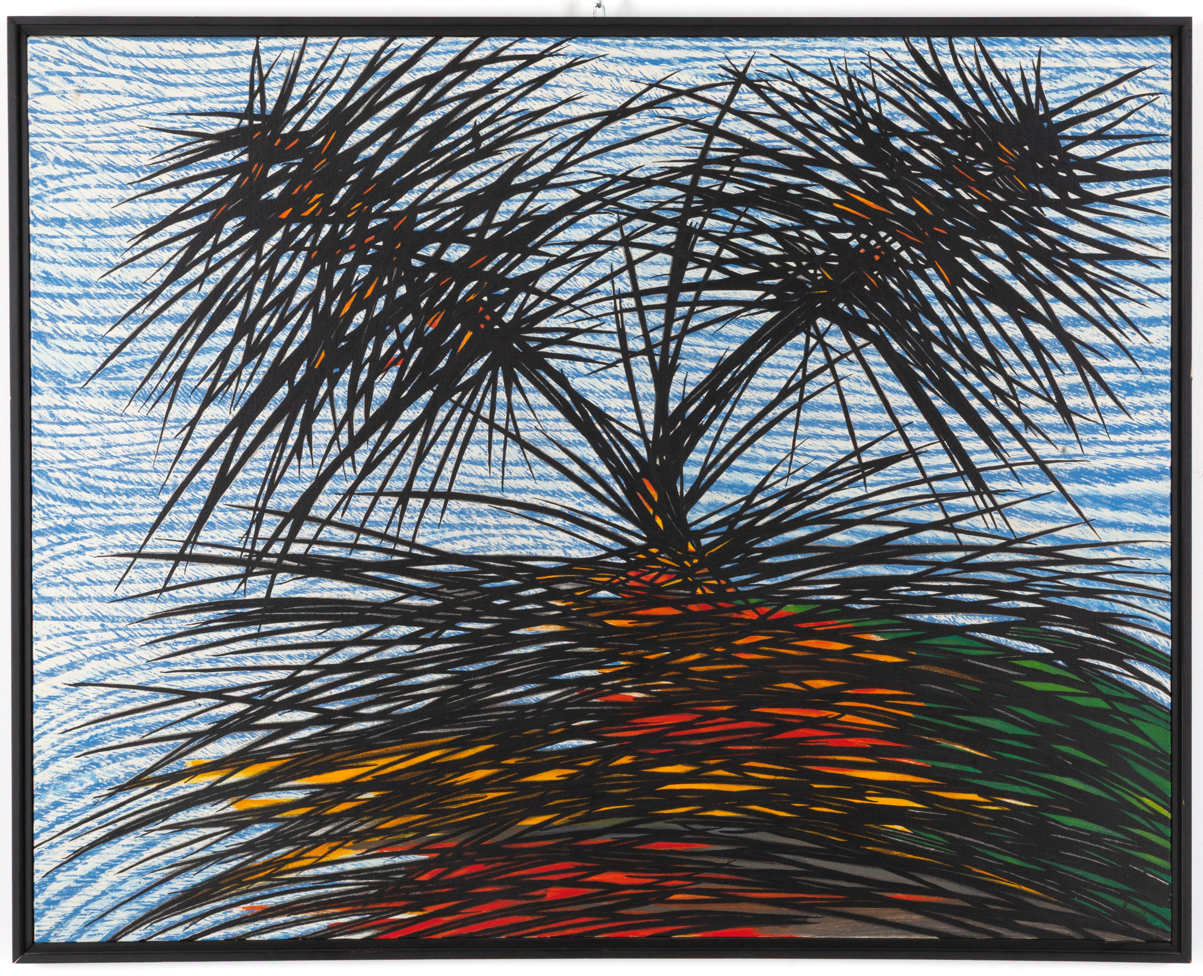 Oil and enamel painting on canvas titled "FORME VEGETALI". Signed lower right. Countersigned and titled on the back. Framed. With certificate of authenticity on photographic paper.
