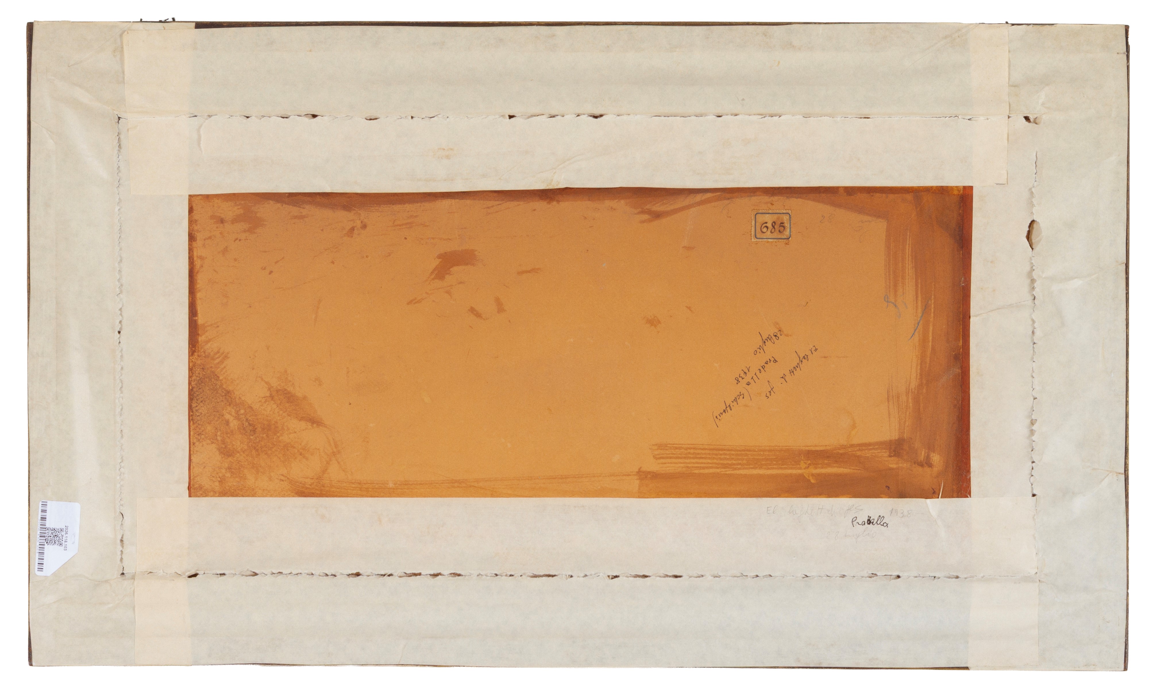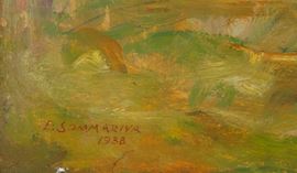 Oil painting on cardboard depicting "VIEW OF THE LAKE." Signed and dated 1938 lower left. Framed.