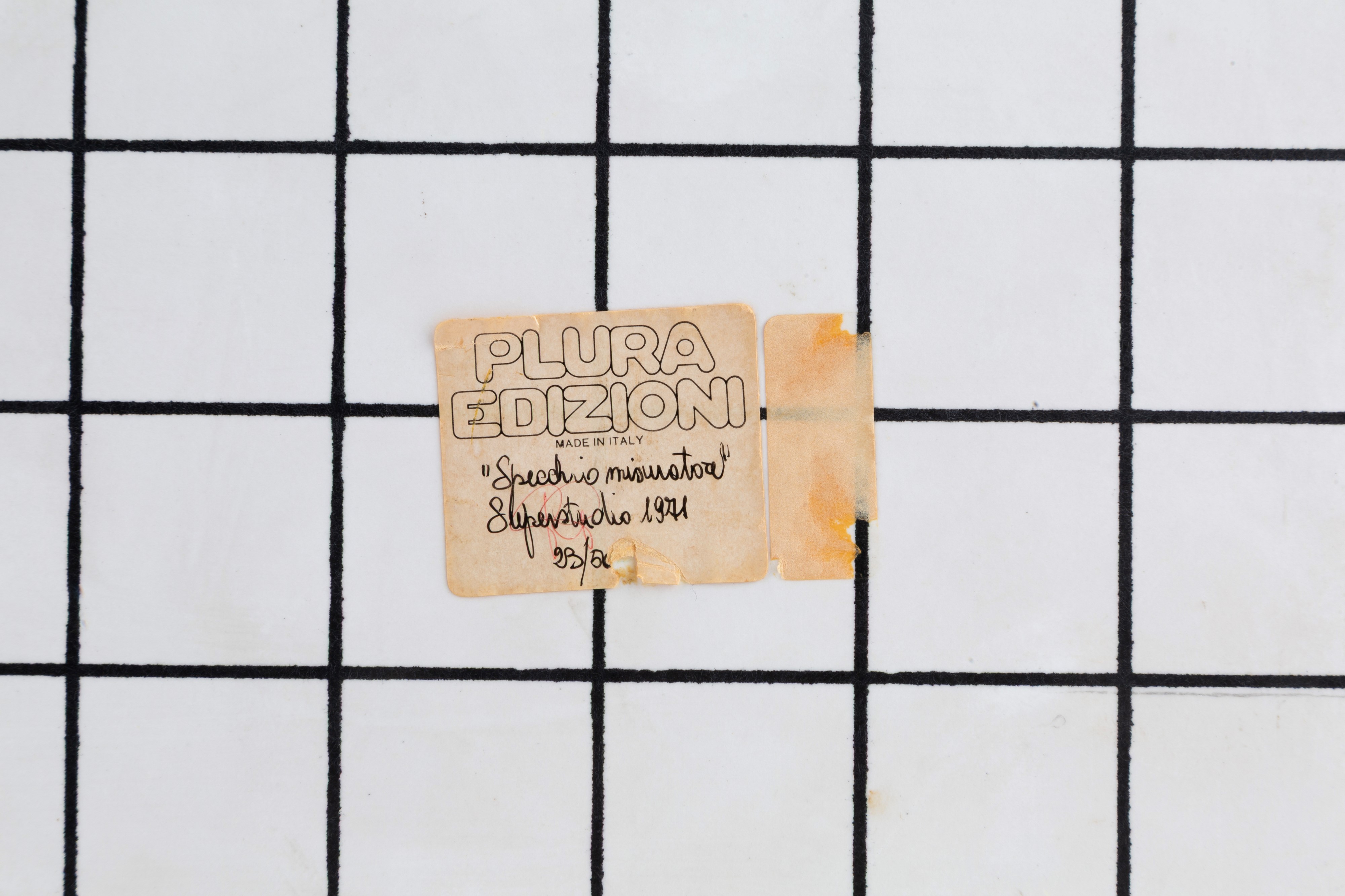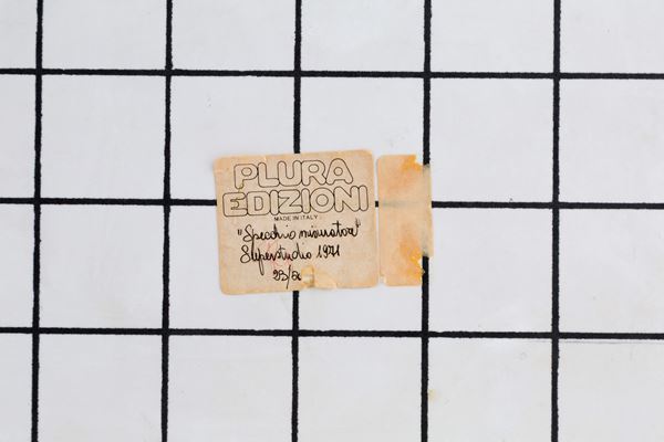 Multiple measuring mirror in silkscreened laminate with mirror. Produced by PLURA EDIZIONI. Number of copies: 23/500. With manufacturer's label. 1971. Signs of wear and tear.