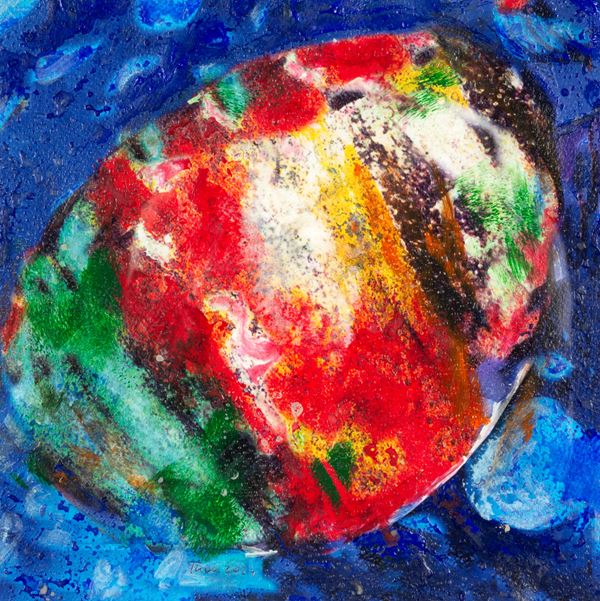 Mixed media on paper depicting "COLIMBO'S EGG." Signed and dated 2024 lower center. Framed.