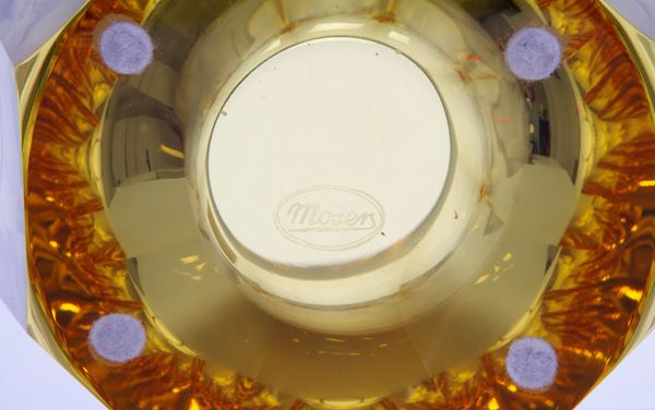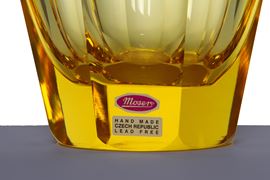 Yellow glass vase. MOSER factory, Czech Republic. Marked under the base and labeled on the bottom.